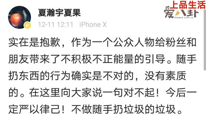 夏瀚宇道歉稱,作為公眾人物因不積極不正經(jīng)能量的引導(dǎo)行為向粉絲及朋友抱歉,隨手扔?xùn)|西是不對的,沒有素質(zhì)的,向大家說句對不起,今后一定會嚴(yán)于律己,不做隨手扔垃圾的垃圾。有網(wǎng)友表示素質(zhì)底下,現(xiàn)在的愛豆越來越無語了,調(diào)侃稱2020真是塌房之年。另有網(wǎng)友說正常,普通人也有這樣的,希望夏瀚宇少抽煙傷身體,做歌手的就得好好保護嗓子。sqV驛資訊
