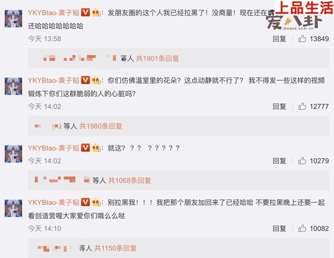 不少粉絲說被嚇到的人都很矯情,還在為黃子韜洗白,這個就真的有點牽強了吧,反正自家的偶像做啥都是正確地。但是作為一個千萬粉絲的明星博主,你的一言一行都在被關(guān)注,每當表達自己的時候應(yīng)該思量一下自己公眾人物的身份,不要把沒素質(zhì)當真性情。4iX驛資訊