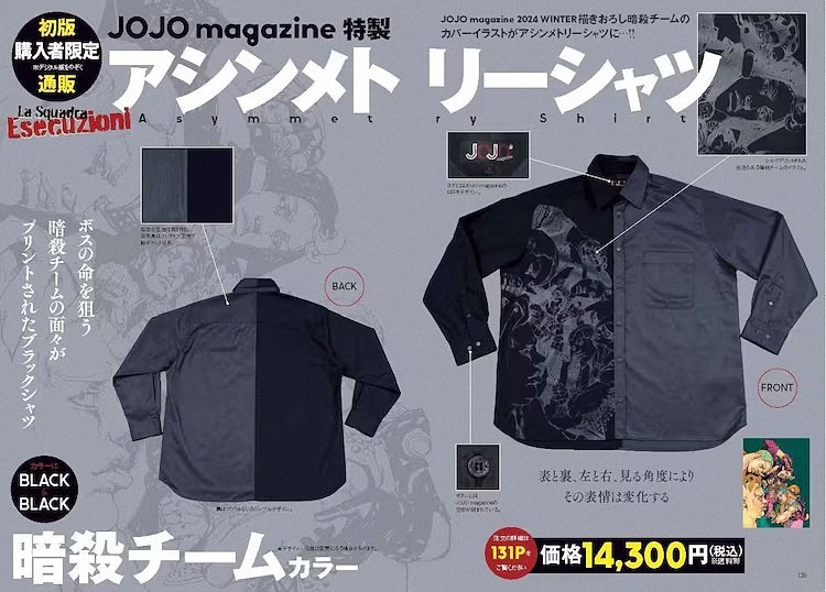 5月23日電影上映當(dāng)天,《JOJO的奇妙冒險(xiǎn)》系列雜志《JOJO magazine 2025 SUMMER》和電影小說(shuō)版同步推出。雜志聚焦《岸邊露伴不行》,展示《悔過(guò)室》原稿照片、荒木工作臺(tái),并通過(guò)90多頁(yè)、14個(gè)企劃深入探討岸邊露伴魅力,收錄多位藝術(shù)家的致敬插畫,以及由増?zhí)铯长Δ工眲?chuàng)作的衍生搞笑漫畫《Echoes ACT50》。初版購(gòu)買者還將獲得限量?jī)煞N顏色的不對(duì)稱襯衫獨(dú)家購(gòu)買鏈接。