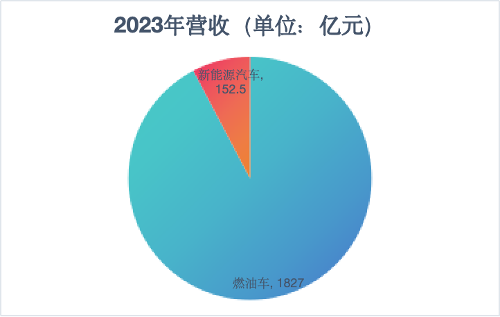 燃油車是北汽集團(tuán)的主要收入來源。2023年北汽股份燃油車收入1827.0億元,占總營(yíng)收的92.3%;新能源汽車152.5億元,僅占總營(yíng)收7.7%。北汽藍(lán)谷新能源汽車營(yíng)收143.2億元,仍與北汽集團(tuán)的燃油車收入規(guī)模相去甚遠(yuǎn)。