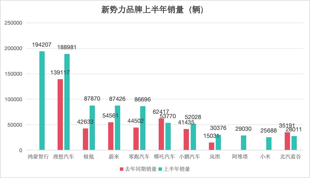 極氪、蔚來、零跑汽車上半年銷量均接近9萬輛,其中極氪、零跑汽車全年銷量目標(biāo)分別為23萬輛、25萬輛,即當(dāng)前分別完成38.2%、34.7%。蔚來方面則對時代財(cái)經(jīng)表示從未公開銷量目標(biāo)。
