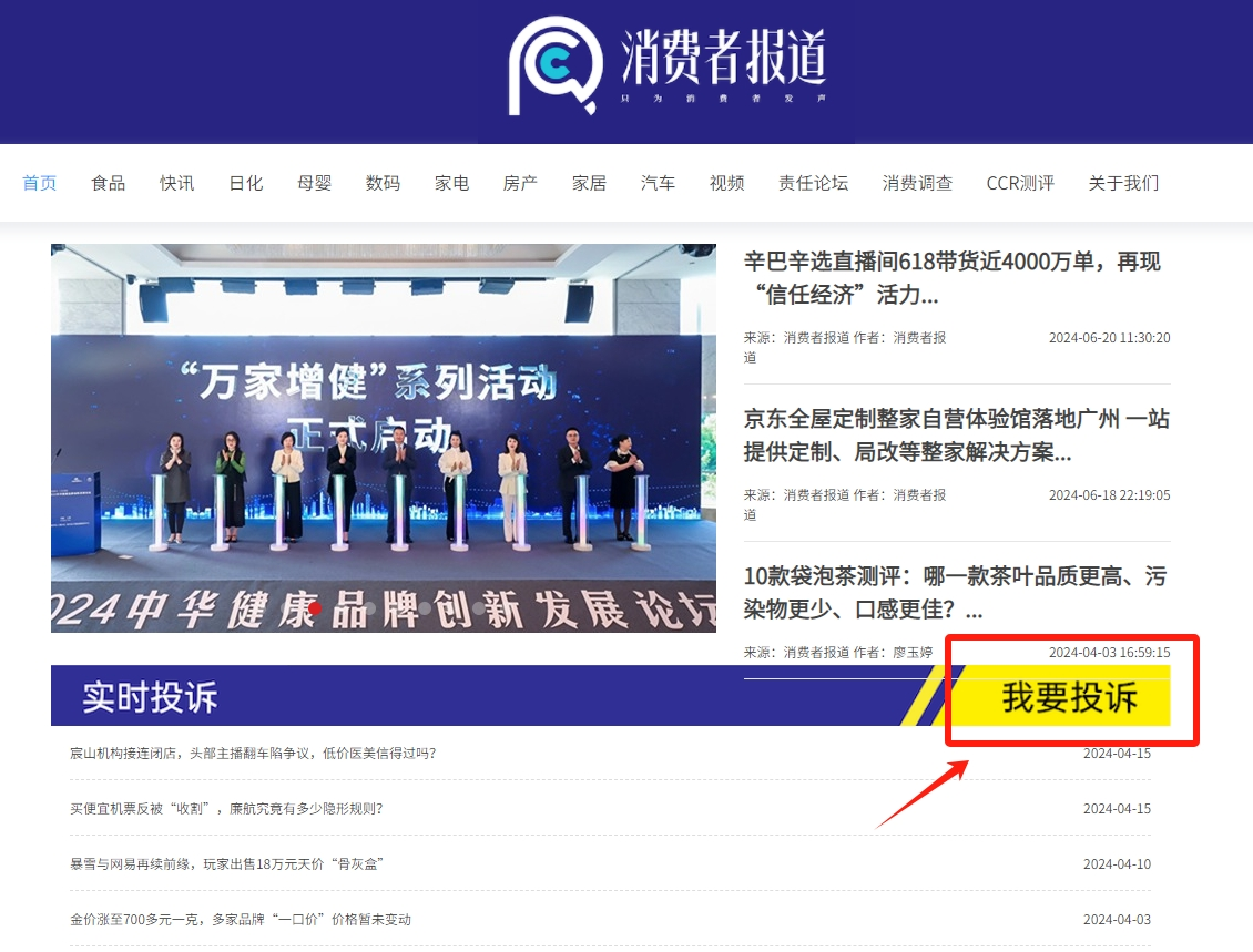比如,通過小紅書私信、抖音私信、微博私信、微博正文帶上“@消費(fèi)者報(bào)道”、微信公眾號(hào)后臺(tái)留言、點(diǎn)擊《消費(fèi)者報(bào)道》官方網(wǎng)站中的“我要投訴”等方式,向《消費(fèi)者報(bào)道》反映問題、提供線索。此外,也可以直接在國家市場(chǎng)監(jiān)督管理總局缺陷產(chǎn)品管理中心官方網(wǎng)站投訴。26K驛資訊