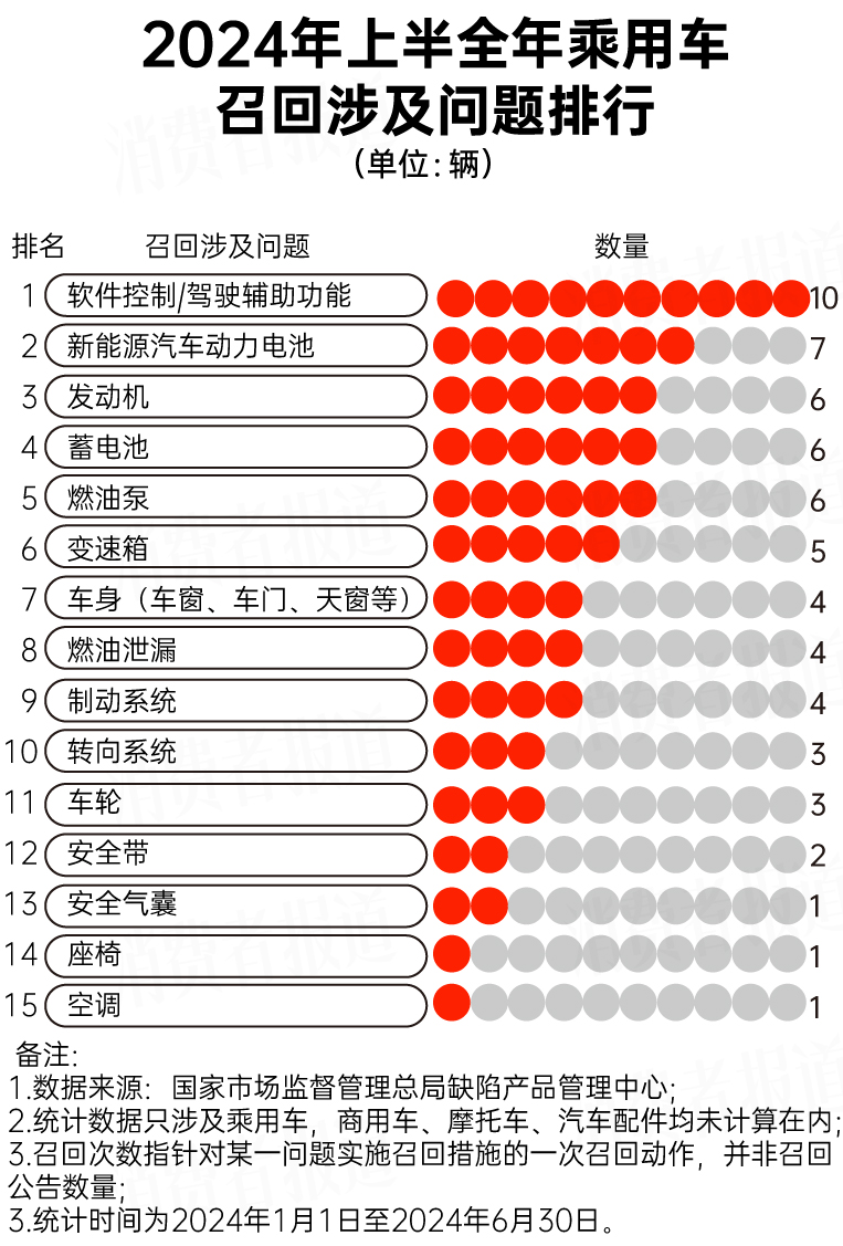 2024年上半年,多個(gè)品牌的車型進(jìn)入召回行列。為此,《消費(fèi)者報(bào)道》對(duì)國家市場(chǎng)監(jiān)督管理總局缺陷產(chǎn)品管理中心在2024年上半年發(fā)布的乘用車召回公告進(jìn)行統(tǒng)計(jì)和分析,帶來2024年上半年汽車召回大數(shù)據(jù)報(bào)告。26K驛資訊