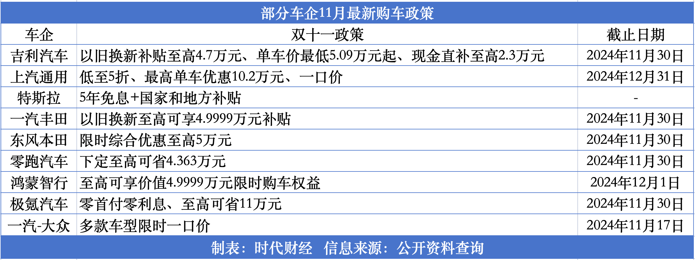時(shí)代財(cái)經(jīng)發(fā)現(xiàn),自11月1日起,多家車企圍繞“雙11”主題,推出了包括“零首付、零利息、限時(shí)一口價(jià)”在內(nèi)的一系列促銷活動(dòng)。YMw驛資訊