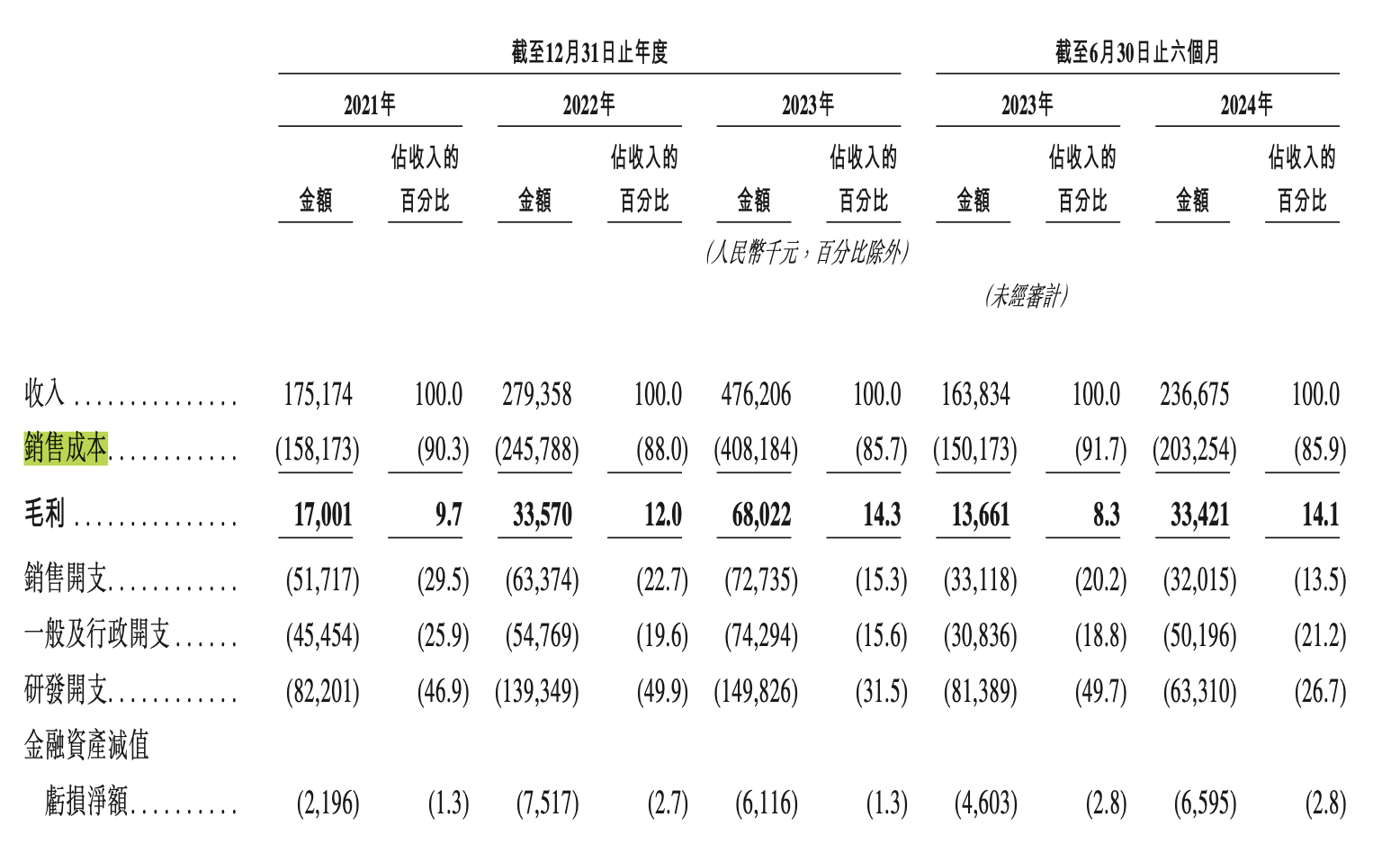 根據(jù)招股書披露的數(shù)據(jù),2021-2023年及2024年上半年,原材料及耗材的采購成本占該公司同期營(yíng)收的比重達(dá)到77.5%、73.8%、73.4%及69.5%;三費(fèi)開支(研發(fā)、銷售、一般及行政開支)占營(yíng)收的比重逐年下降,但截至今年上半年末依舊占營(yíng)收的61.4%。ful驛資訊