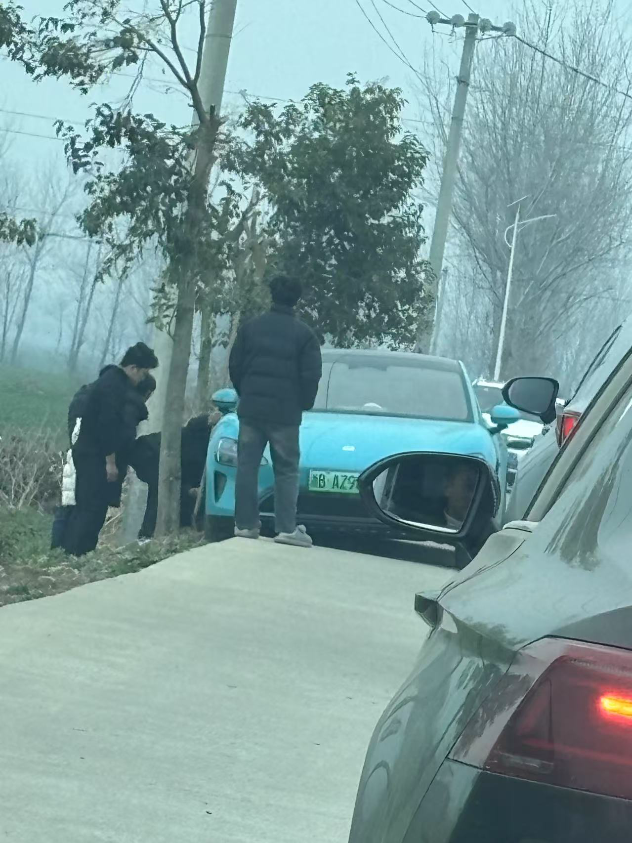 在鄧州某鄉(xiāng)道上,由于車道有限,一輛小米SU7卡在了道路邊緣。圖片來(lái)源:時(shí)代周報(bào)記者攝 8Hh驛資訊