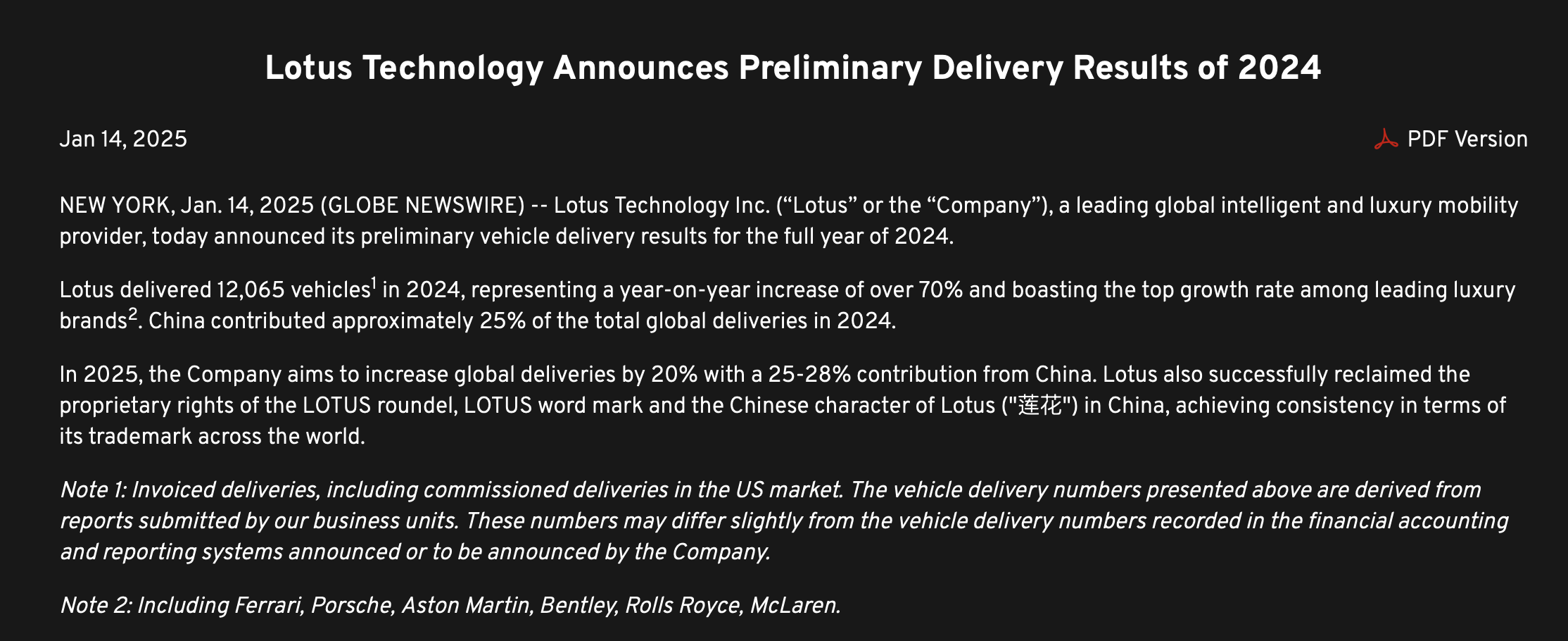 蓮花跑車發(fā)布的交付量公告(圖源:企業(yè)官網(wǎng)) L5U驛資訊
