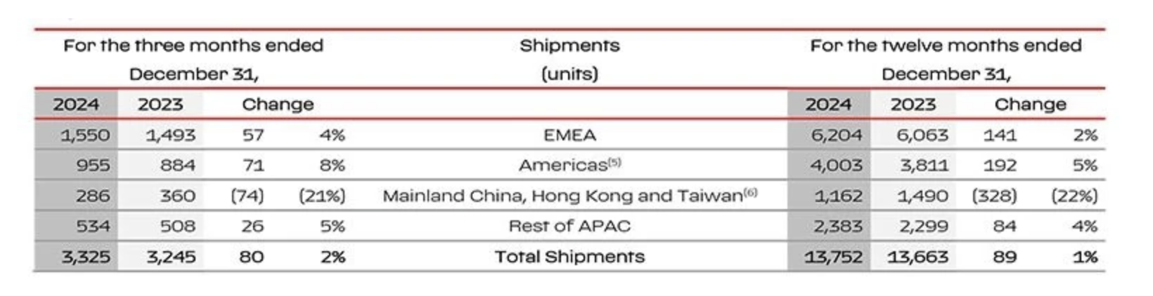 2024年法拉利在不同市場銷售表現(xiàn)(圖源:企業(yè)官網(wǎng)) L5U驛資訊