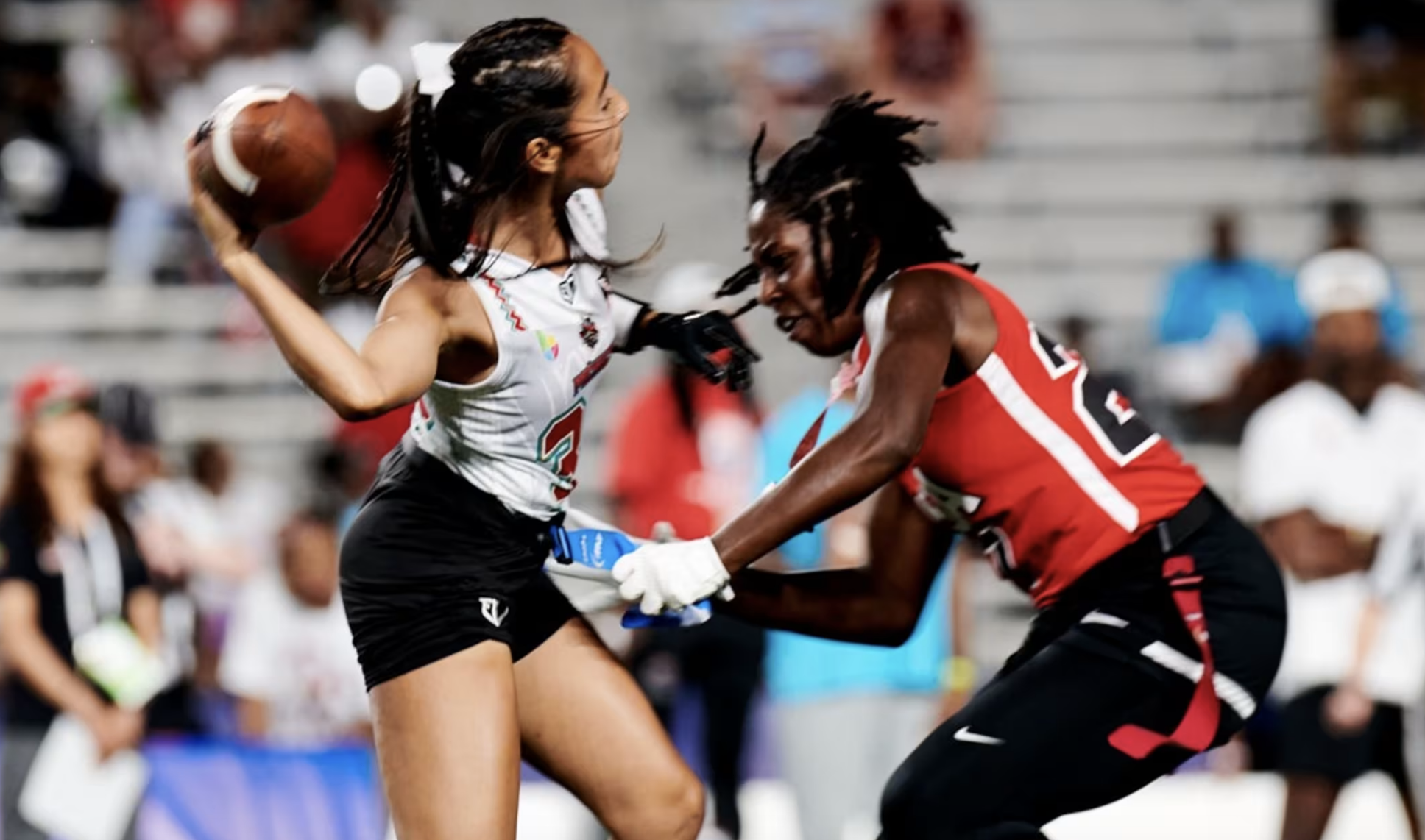 腰旗橄欖球以扯掉“腰旗”代替了直接的身體對抗。(圖源:巴黎奧運官網) n86驛資訊