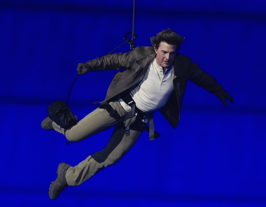 堅持不用替身演員的湯姆·克魯斯從天而降。(圖源:巴黎奧運官網) n86驛資訊