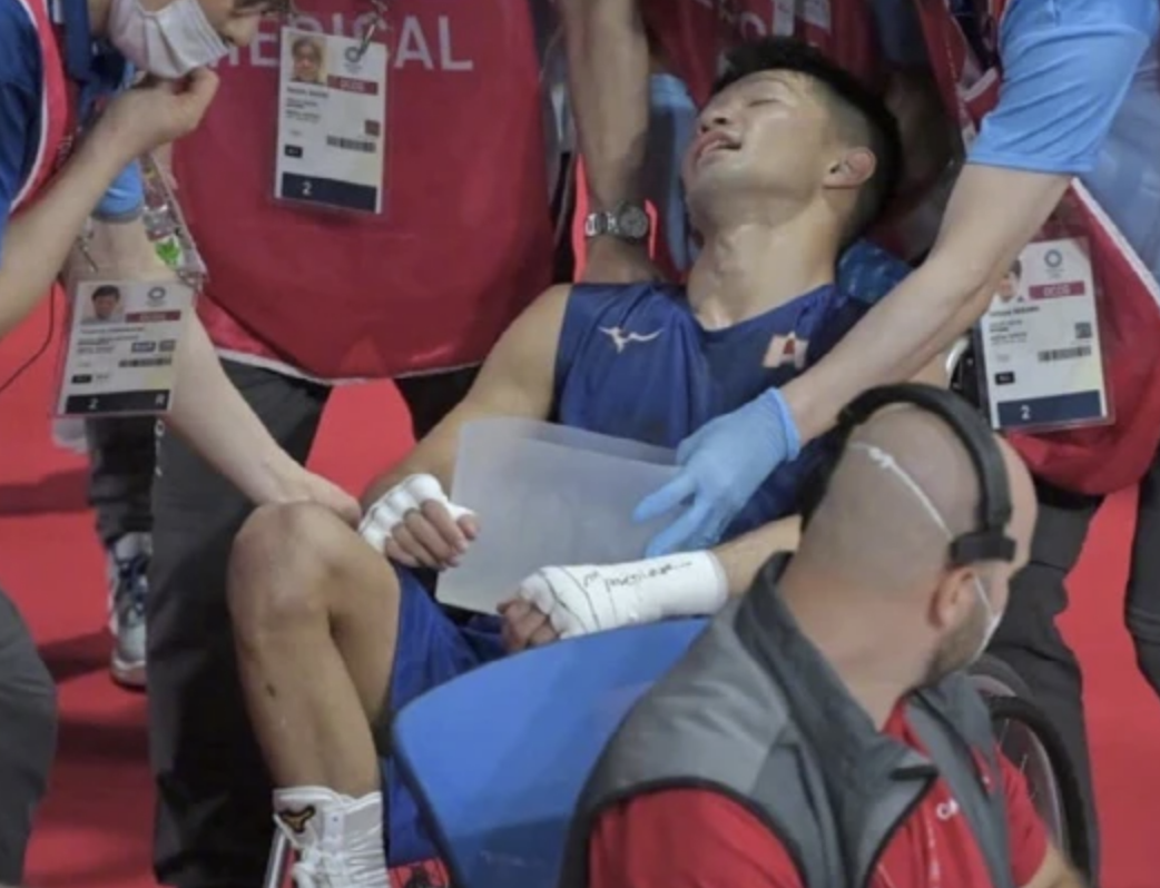 被打致坐輪椅的日本拳擊手田中被判定勝利,成為東京奧運會上最具爭議的一幕。(圖源:社交媒體) n86驛資訊