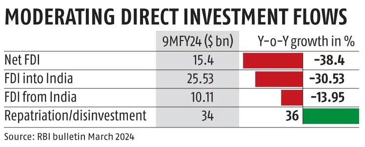來自印度央行(印度儲(chǔ)備銀行,RBI)3月的數(shù)據(jù)顯示,2023-24財(cái)年前10個(gè)月(2023年4月至2024年1月),印度的外國直接投資為255.3億美元,流出量為101.1億美元。相比之下,去年同期FDI的流入為367.5億美元,流出為117.5億美元。tkE驛資訊