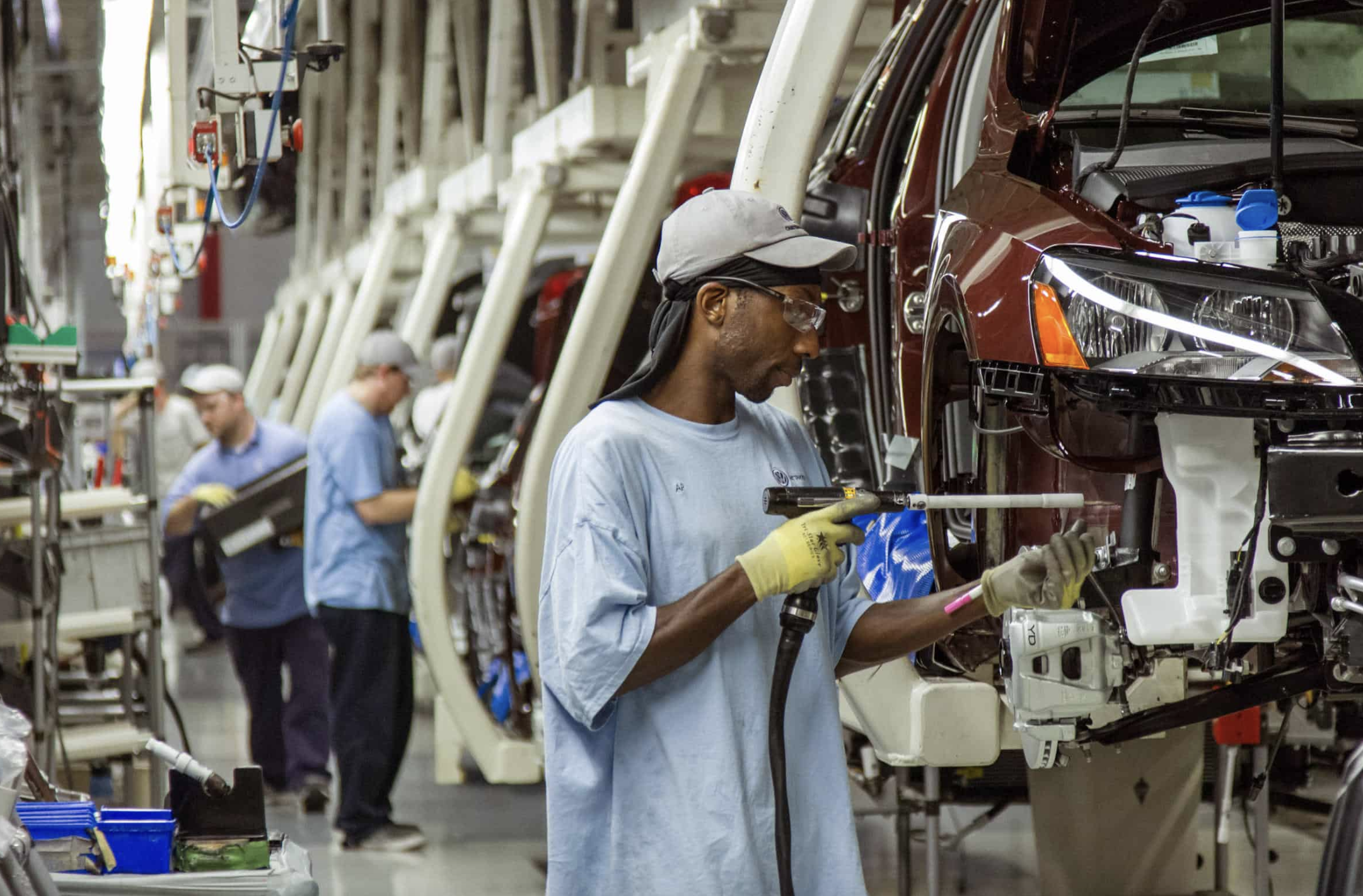 美國汽車工廠里的員工。(圖源:社交媒體) wO7驛資訊